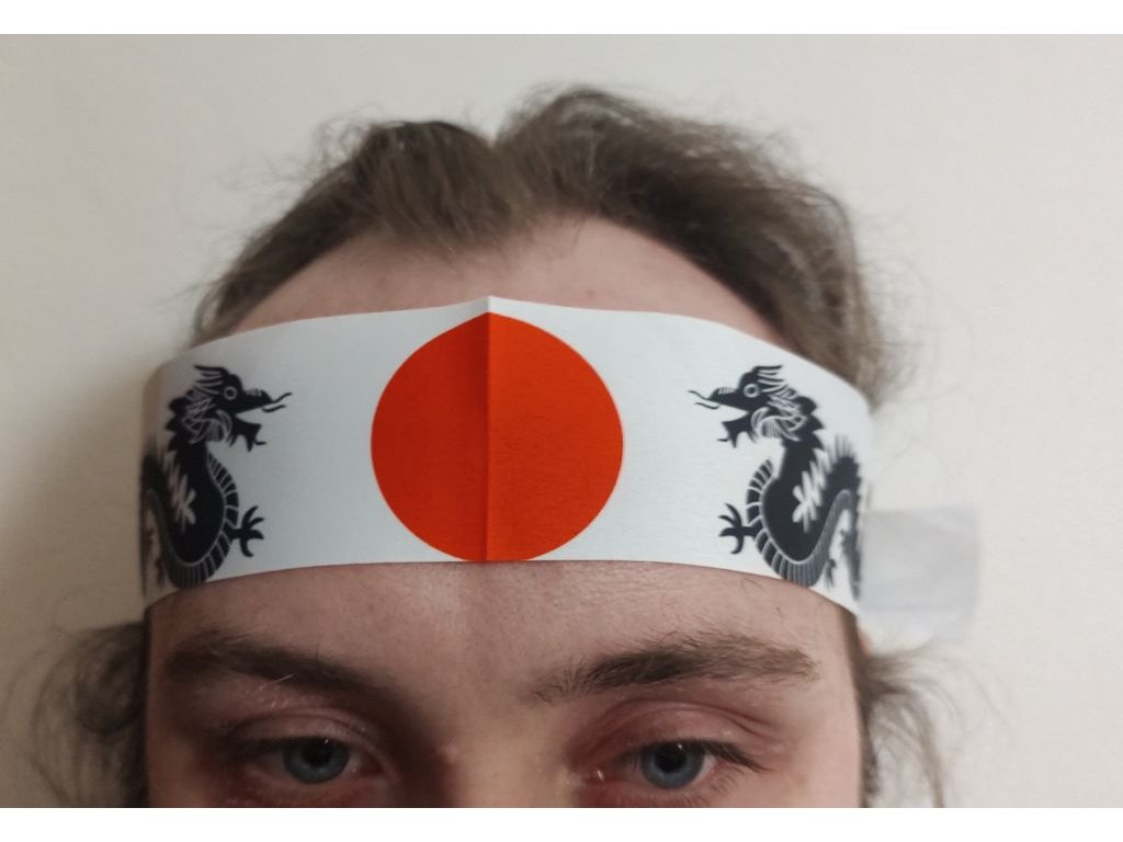 Čelenka s japonským znakem a draky
